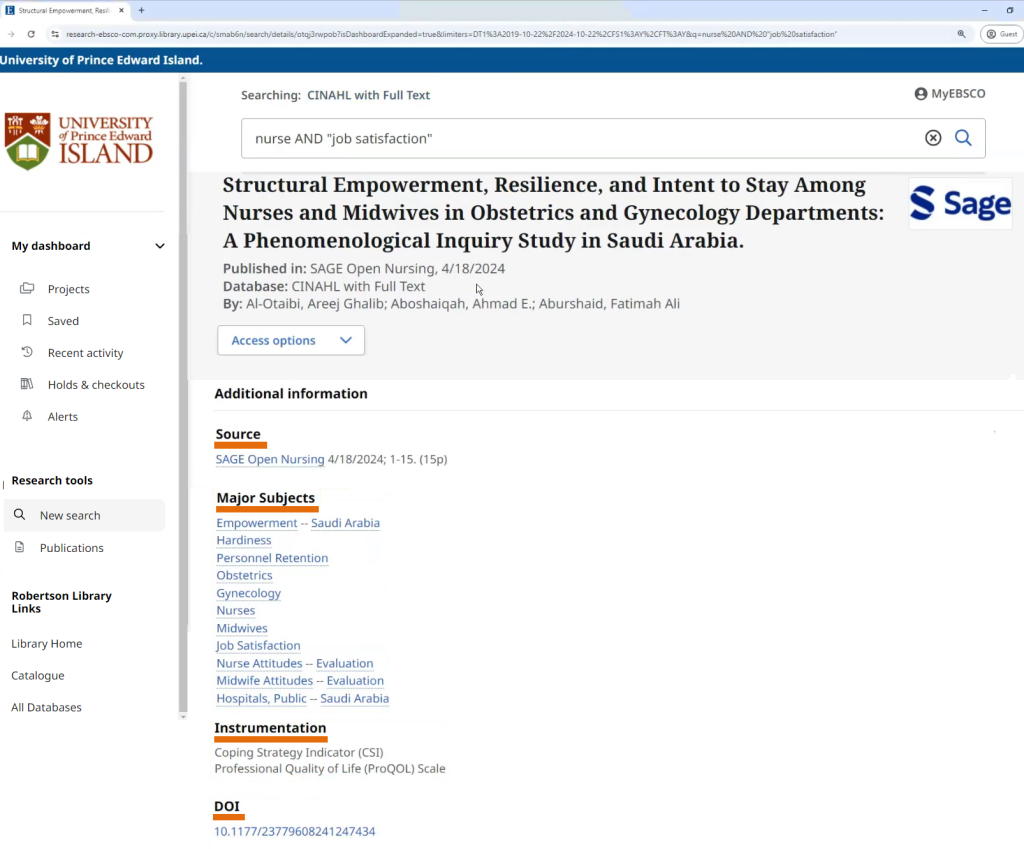 including more information about the journal in which this article was published, the subject terms, any instruments used (such as a survey tool), and the DOI.