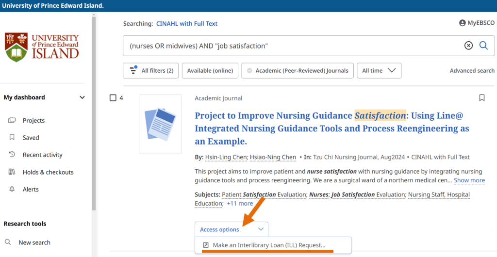 To learn more about Interlibrary Loan, you can watch the Interlibrary Loan tutorial or go to library.upei.ca/ill