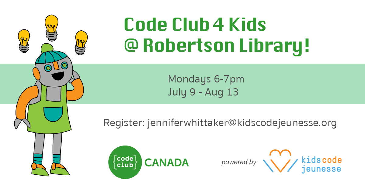 To register: email jenniferwhittaker@kidscodejeunesse.org
