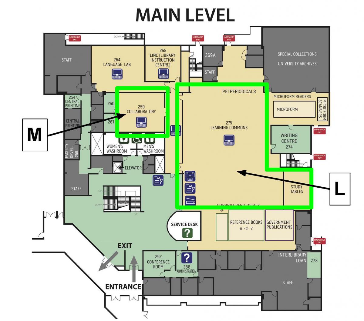 All tables, carrels, computers, and rooms in the library must be booked before arrival. Make a reservation by logging in with your UPEI account to the Library’s online reservation system at https://rooms.library.upei.ca/. Changes to the use of study areas within the Library include: