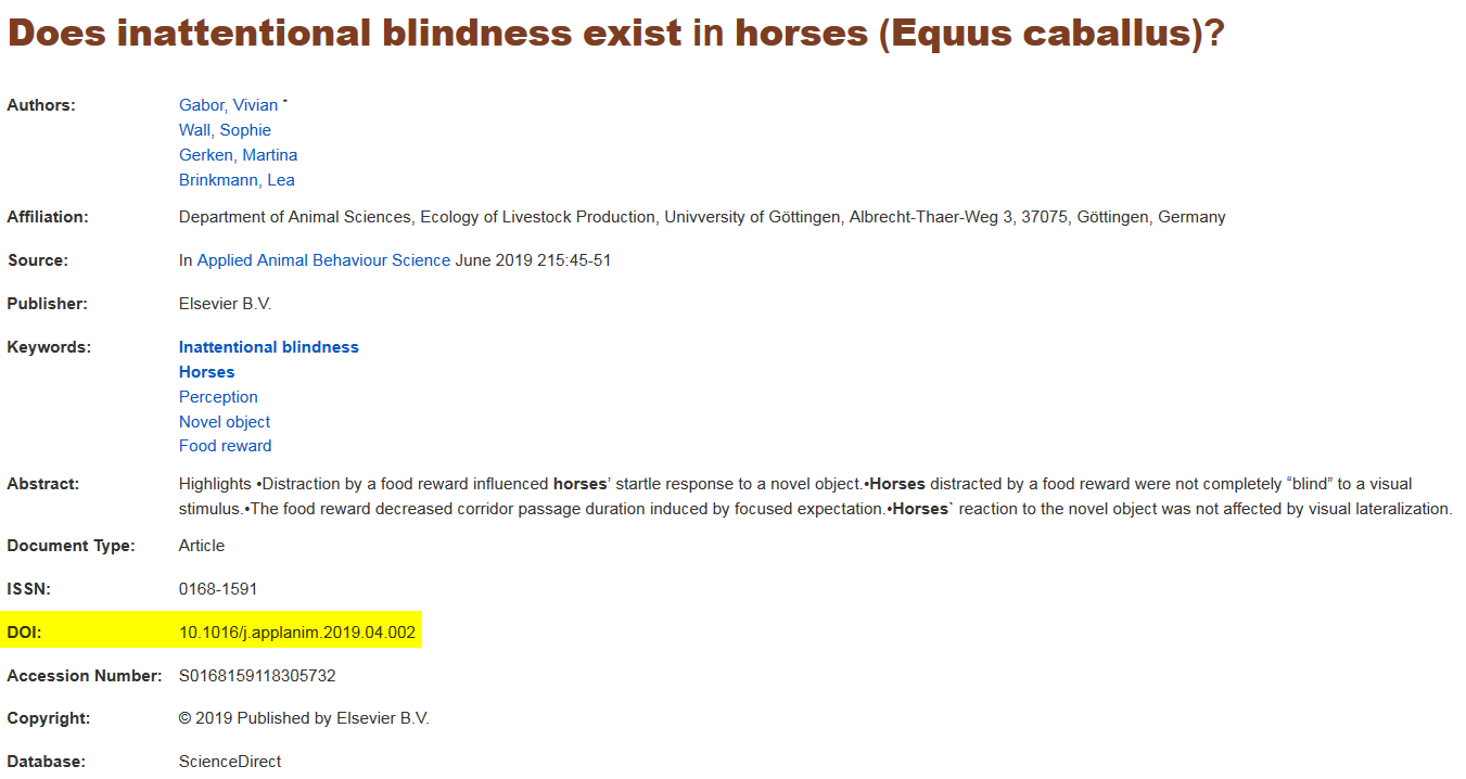 - Copy and paste (or type) the article title into Google. Click on the publisher's link to the article and look for the DOI on the article page: