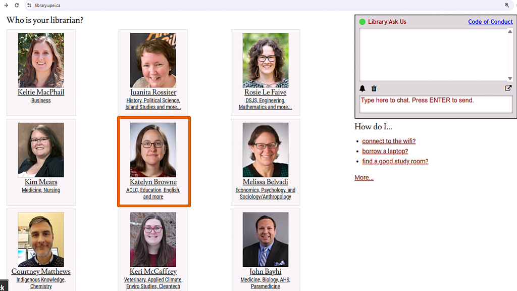 If you need more help, ask us at the service desk, phone us at (902)-566-0583, send an email to reference@upei.ca, or use the chat tool on the library website.