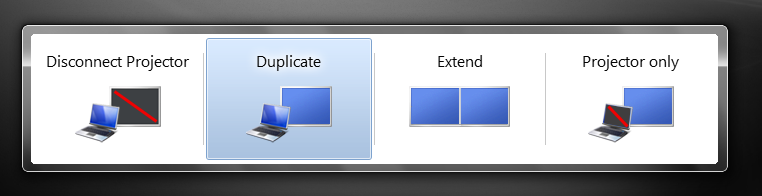 • While holding the Fn key press the cycle display button to bring up a menu with some options like: Duplicate and Extend.